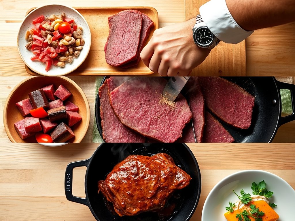 "The Fix-It" guide for common pitfalls: If your meat is tough, it simply hasn't cooked long enough; put it back in the simmer. If it is too salty, add a raw potato to the pot to soak up excess brine, or replace half the cooking liquid with fresh water. If the meat is dry despite being tender, you likely boiled it too hard; next time, use a thermometer to keep the water under 200 degrees. For meal prep, store the beef in its own cooking liquid. The liquid acts as a preservative and prevents the meat from oxidizing and turning grey. When reheating, do so gently in a covered dish with a splash of broth to maintain that "day-one" moisture.
