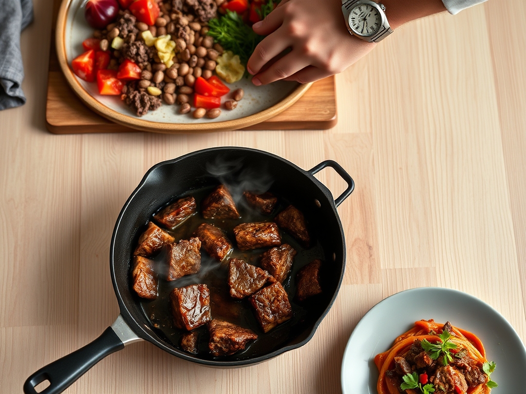 Place your heavy-bottomed skillet over medium-high heat until the oil ripples. Add the beef in a single layer and do not touch it for at least three minutes. This allows for maximum surface contact and the development of a deep brown crust.