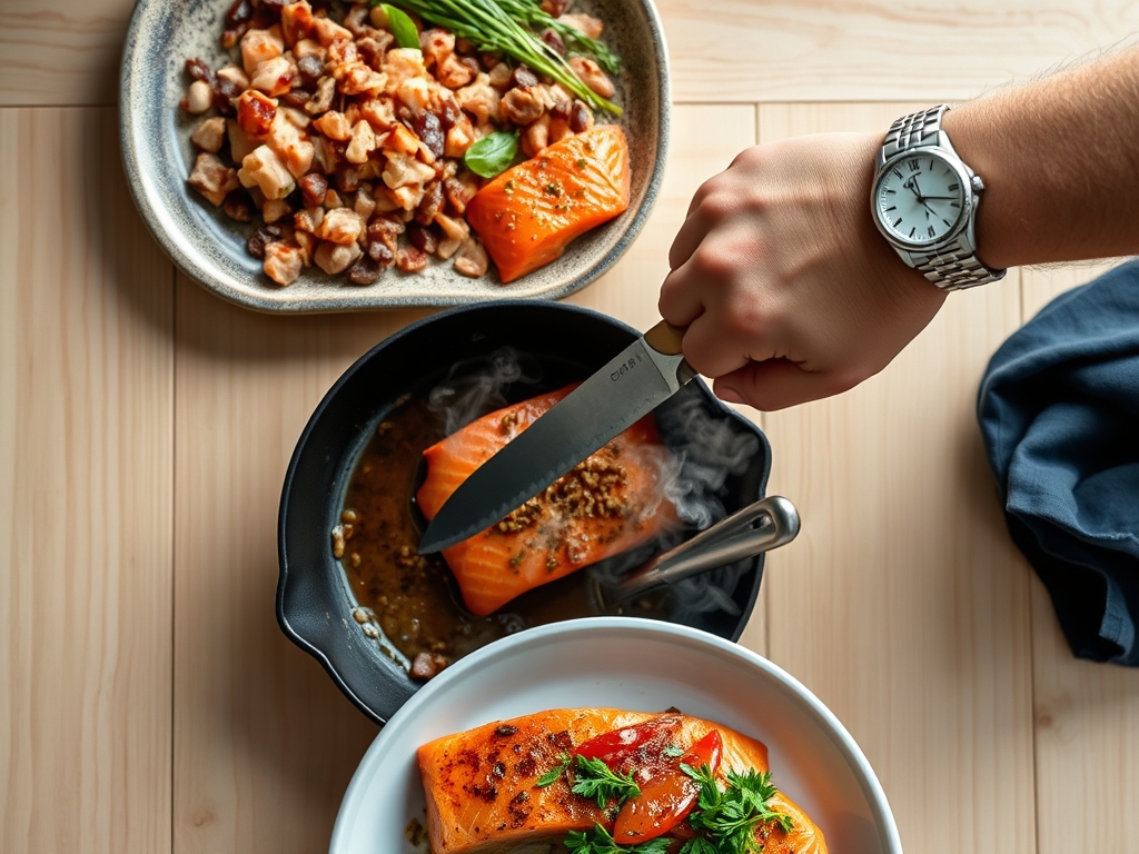 Meal Prep: To maintain "day-one" quality when reheating, never use a microwave. The localized high-frequency waves will toughen the salmon. Instead, use a steamer basket or a low-temperature oven (275 degrees Fahrenheit) to gently bring the dish back to temperature without denaturing the proteins.