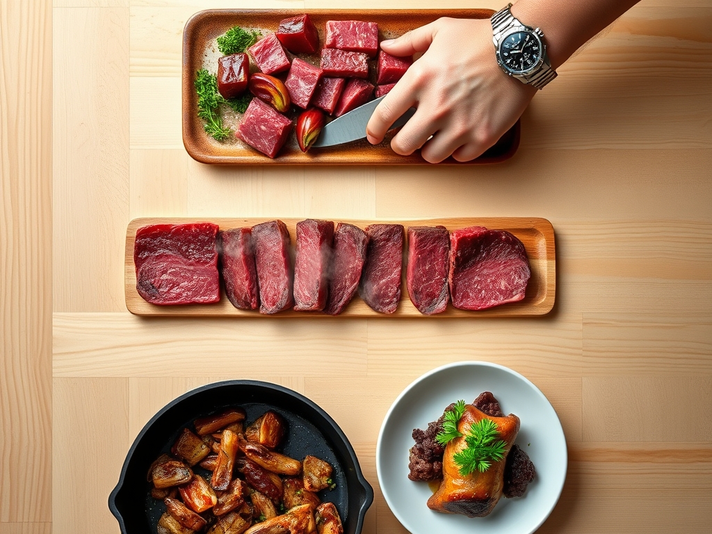 Before we ignite the flame, your mise-en-place must be flawless. You need a high-quality roast, preferably a center-cut tenderloin or a standing rib roast with significant intramuscular marbling. The fat should be white and firm, indicating a well-finished animal. You will also need coarse kosher salt; the large grains are essential for controlled seasoning and drawing out moisture. Fresh aromatics are non-negotiable: sprigs of woody rosemary, thyme, and a whole head of garlic to infuse the rendered lipids. For the crust, gather cracked black peppercorns and perhaps a touch of porcini powder for an earthy umami boost.